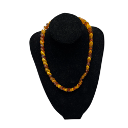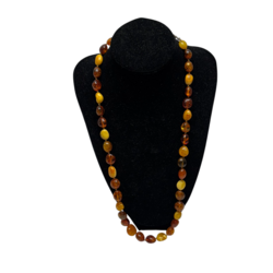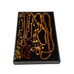 | Omschrijving | Zeven barnstenen halssnoeren, zowel met geknoopte als geregen kralen, diverse vormen en kleuren |