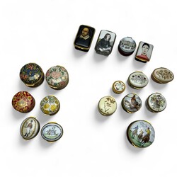 | Omschrijving | Zeventien diverse geëmailleerde snuisterijen- of pillendoosjes, diverse uitvoeringen, alle Engels, waaronder drie limited editions [portretdoosjes] van Halcyon Day, enkele ronde exemplaren met bloemdecors geïnspireerd op het werk van William Morris |