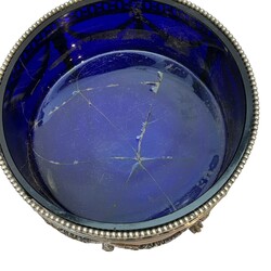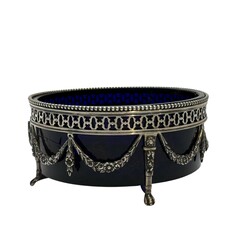 Zilveren jardiniere versierd met guirlandes