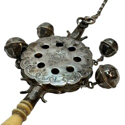 | Kavel | 1728. zilveren rammelaar met belletjes |