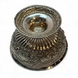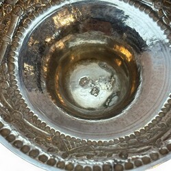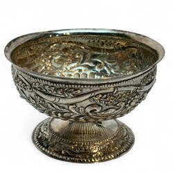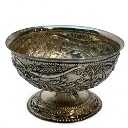 Zilveren roomkom versierd met drijfwerk