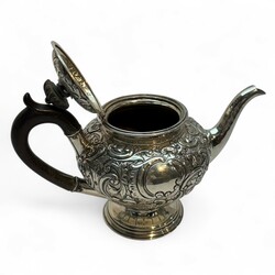 | Kavel | 1771. Zilveren theepot met floraal drijfwerk |