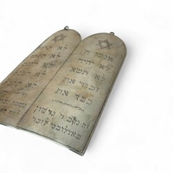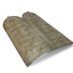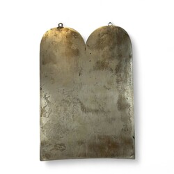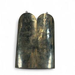 | Omschrijving | Zilveren thora schild met daarop gegraveerd aan elke zijde een Jodenster met daaronder in het Hebreeuws de tien geboden, 19e eeuw |