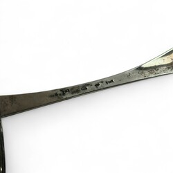 | Omschrijving | Een antieke laat 18e eeuwse strooilepel, ajour gezaagde bak met onder andere stermotieven. Aan de binnenzijde gekeurd met belastingkeur ‘V’, aan de achterzijde onduidelijke keuren. |