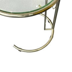 | Omschrijving | Een 20e eeuwse chromen bijzettafel met rond glazen blad, ontwerp Eileen Gray. Uitvoering onbekend, mogelijk ClassiCon. |