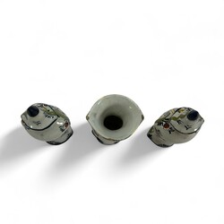 | Omschrijving | Een driedelig 18e eeuws Delfts aardewerken kaststel, Louis XV stijl, met polychroom decor. Gemerkt de Witte Ster. Conditie: met restauraties. |