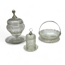 | Kavel | 2081. kristallen bowlpot,deksel met zilv.knop +krist natfruitschaal met onderschotel en zilv. hengsel +. 100 |