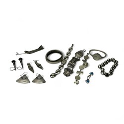 | Omschrijving | Lot diverse zilveren sieraden, waaronder een eerste gehalte (925/1000) zilveren slavenarmband, vier sets eerste gehalte (925/1000) zilveren oorhangers, zware tweede gehalte (835/1000) zilveren armband, tweede gehalte (835/1000) zilveren Ancre dameshorloge, Djokjazilveren armband met Wajangpoppen en Indonesische munten en armband gemaakt van Bijbelslot |