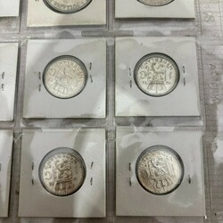 | Omschrijving | Een lot met 28 Nederlandse zilveren (720/1000) guldens en acht zilveren (720/1000) rijksdaalders. Diverse jaren. |