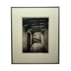 | Omschrijving | Ets op papier, voorstelling van een gangetje met titel 'Gewelf Kanselarij Leeuwarden'. Rechtsonder gesigneerd Abe Gerlsma (Franeker 1919-2012). |