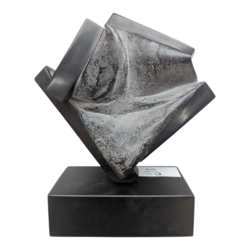 | Omschrijving | Een 20e eeuws beeldhouwwerk, uit zwart steen. Aan de onderkant gemonogrammeerd ‘KVO’ = Karin van Ommeren (Utrecht, 1955). |