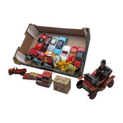| Omschrijving | Lot met diverse metalen en blikken modelauto's. Meeste 1/24 schaal. Diverse merken en modellen. |