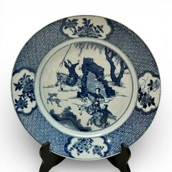 | Omschrijving | Lot porselein: paar borden met blauw-wit transferdecor, gedecoreerd met voorstelling van Joosje te paard en hertenjacht, gemerkt met nep Chinees merk, uitvoering door Petrus Regout, Maastricht, eind 19e eeuw, daarbij: paar Chinees porseleinen kommen met decor van een visser, 20e eeuw |