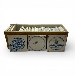 | Omschrijving | Lot van 36 tegels, voornamelijk 17e eeuws, met diverse voorstellingen |