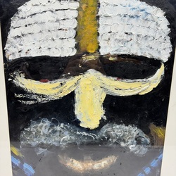 | Omschrijving | Schilderij, acryl op papier. Voorstelling van een Afrikaanse man. Ongesigneerd werk van Pim Lenos (Schiedam, 1945). Verso met label kunsthandel P.B. van Voorst van Beest. |