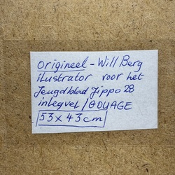 | Omschrijving | Gouache op papier, voorstelling van een dierentuin met diverse dieren, o.a. tapir, tijger en kameel, met bijschrift. Originele gouache als ontwerp voor een inlegvel voor jeugdblad Jippo. Linksonder gesigneerd gesigneerd Will Berg (Arnhem 1921-2001) |