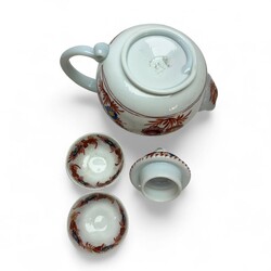 | Omschrijving | Een antieke 18e eeuwse Boheemse witglazen theepot en twee kopjes, met polychrome emaille beschildering, floraal decor. |