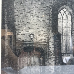 | Omschrijving | Ets op papier, voorstelling van een kerkdeur in het donker, titel 'Martinikerk Franeker'. Rechtsonder gesigneerd Abe Gerlsma (Franeker 1919-2012). |