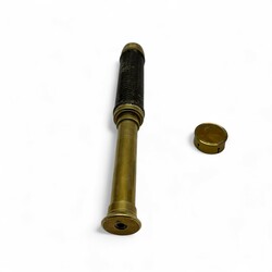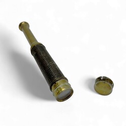 | Omschrijving | Een antieke vroeg 20e eeuwse messing telescoop, uitvouwbaar, met leren handvat. Ongemerkt, ca. 1900 |
