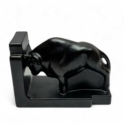 | Omschrijving | Een stel 20e eeuwse keramieken boekensteunen, art deco stijl, in de vorm van twee stieren. Ongesigneerd/ongemerkt. |