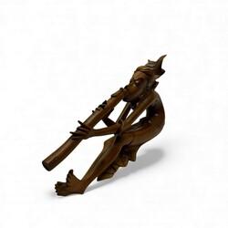 | Omschrijving | Een 20e eeuws gestoken houten Indonesisch sculptuur, voorstelling van een zittende, fluitspelende man. Aan de onderzijde gesigneerd 'M. Java Mas Bali' |