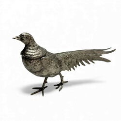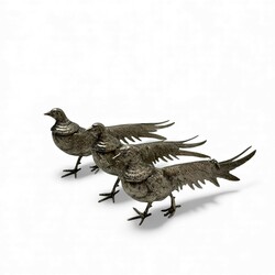 | Omschrijving | Lot van drie 20e eeuwse tafelstukken, verzilverd, in de vorm van fazanten. |