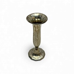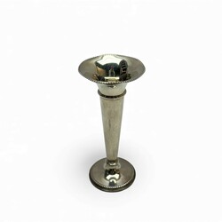 | Omschrijving | Lot van drie 20e eeuwse tweede gehalte (835/1000) zilveren bloemenvaasjes, met trompetvormige hals. Eén versierd met parelrand. |