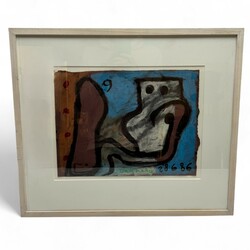 | Omschrijving | Gemengde techniek op papier, abstracte compositie. Middenonder gesigneerd Ed Dukkers (Zandvoort 1923 – Amsterdam 1996), gedateerd 1986. |