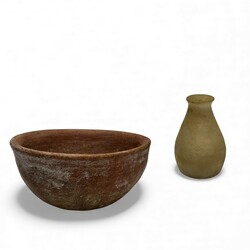 | Omschrijving | Een terracotta kogelpotje. Hierbij een geel glazen olieflesje. Bodemvondsten. Vindplaats niet bekend. |