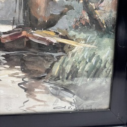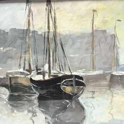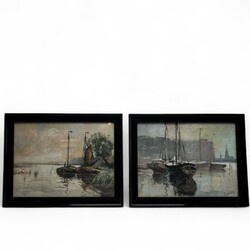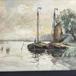 | Omschrijving | Schilderij, olieverf op doek (marouflé), achter glas. Voorstelling van zeilschepen in zomer en winter. Rechtsonder gesigneerd Gerard Cohn Roemers (1900-1965) |