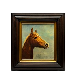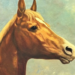 | Omschrijving | Schilderij, olieverf op doek. Paardenhoofd tegen lichtblauwe achtergrond . Linksonder gesigneerd G.J. Adema (Franeker 1898 - Leeuwarden 1981). In brede bruine lijst. |