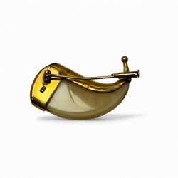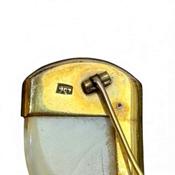 | Omschrijving | Een 20e eeuwse 9 karaats (375/1000) geelgouden broche, met tijgernagel. |