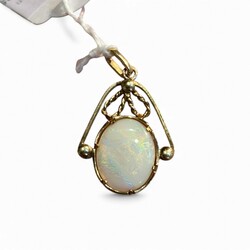 | Omschrijving | Een 20e eeuwse 14 karaats (585/1000) geelgouden hanger bezet met maansteen |
