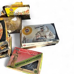 | Omschrijving | Groot lot 20e eeuwse Airfix sculpturen. Bananendoos gevuld met losse doosjes (vol, gedeeltelijk gevuld en leeg), o.a. Duits, Brits, Amerikaans enAustralisch. Met daarbij twee zakken gevuld met losse figuurtjes. |