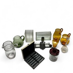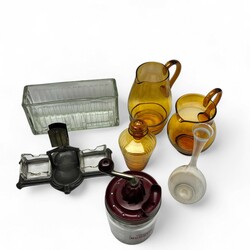 | Omschrijving | Grote lot met divers glaswerk, karaf, oorkannen en diverse glazen en doos met Muller messenleggers. |