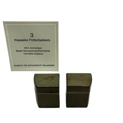 | Omschrijving | Lot van twee 20e eeuwse keramieken groen geglazuurde dekseldozen, aan de onderzijde met monogram Henriëtte Syatauw (De Bilt, 1927). |