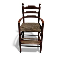 | Omschrijving | Een 19e of 20e eeuwse Hindelooper beschilderde kinderstoel met gevlochten zitting. |