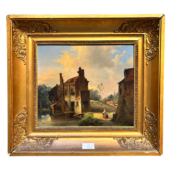 | Kavel | 2303. Hollandse School 19e eeuw - Dorpsgezicht met wandelaars bij een landhuis |
