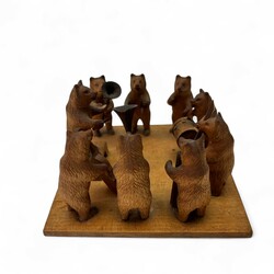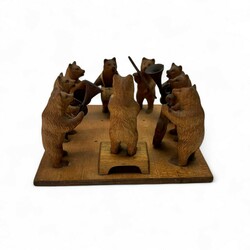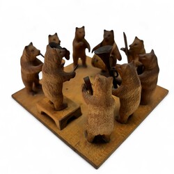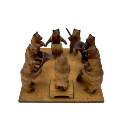 | Omschrijving | Een vroeg 20e eeuws uit hout gestoken sculptuur, voorstelling van acht musicerende beren en een dirigent, tevens een beer. |