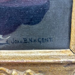 | Omschrijving | Schilderij, olieverf op doek. Stilleven met distels in een tinnen beker en een Japans schaaltje. Rechtsonder gesigneerd Johannes Baptist Nicolaas (Joan) van Gent (Arnhem 1891 - Den Haag 1974). In gipsen ornamentenlijst. |