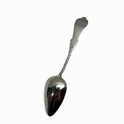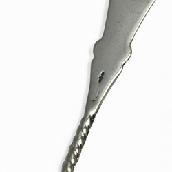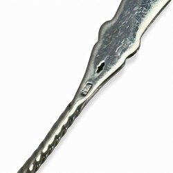 | Omschrijving | Een kristallen lepelvaasje met tweede gehalte (835/1000) zilveren rand, gevuld met een set van elf zilveren theelepels en een suikerschepje, met getorste steel en gegraveerd, mr. A. Pluut jr. Schoonhoven 1926-1971). |