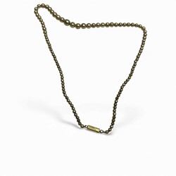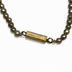 | Omschrijving | Een lederen sigaren etui, met een 14 karaats (585/1000) gouden applicatie. Voorzien van gravering, initialen en gedateerd 1920. Hierbij een imitatie parelsnoer, oplopend in grootte, aan een 14 karaats (585/1000) gouden staafvormig slot. In etui. |