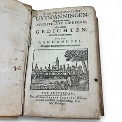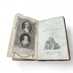 | Omschrijving | Lot boeken: ‘Die Jobsiade - Ein grotesk-komisches Heldendicht’, derde uitgave 1823, in kalfsleer gebonden boek ‘J. van Lodensteyns Uytspanningen, Behelsende eenige Stichtelyke Liederen, en Andere Gedichten’, Amsterdam, uitgegeven door wed. Barent Visscher 1721, en serie ‘Historie der Regeering van Keizer karel den Vyfden’, William Robertson, uitgegeven bij Dirk Vis en Pieter Holsteyn, 1772, deel I, III, V en VI, en ‘Fabelen uitgegeven door E. Bekker wed. A. Wolff en A. Deken, Isaac van Kleef MDCCLXXXIV (1784). |