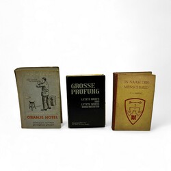 | Omschrijving | Lot van 3 boeken, o.a. over de vervolging van de Nazi's na WOII waaronder 'Gedenkboek van het oranje hotel', 'In naam der menschheid' en 'Grosse prüfung letzte briefe und letzte worte todgeweihter' |