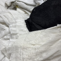 | Omschrijving | Lot divers textiel, o.a. voor het Fries kostuum, onder andere onderrokken, 19e eeuwse zwarte cape & zwarte stola, 19e en 20e eeuwse meisjesjurkjes, |