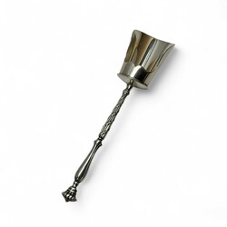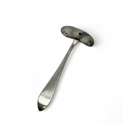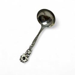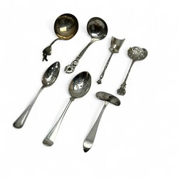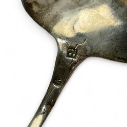 | Omschrijving | Lot divers tweede gehalte (835/1000) zilveren schepwerk, waaronder een 19e eeuwse roomlepel met ronde bak, hartvormig ornament op de steel, bekroond met kip of eend. Mr. JS160 = Jan Schijfsma, Sneek/Woudsend, 1869, een 20e eeuwse roomlepel bekroond met bloem ‘Gloxina’, een tafelschuivertje met dubbelfiletrand, suikerschepje, model ‘Kroontje’, Niekerk, en een natfruitschepje, model Haags Lof, van Kempen, jaarletter I (1918). |