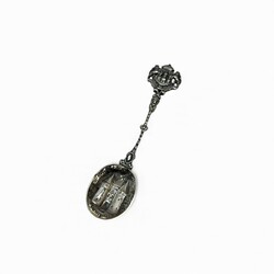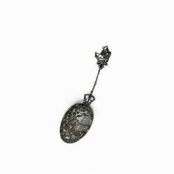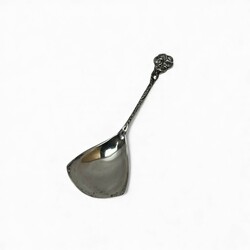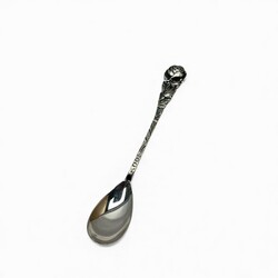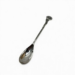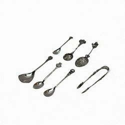 | Omschrijving | Lot divers 20e eeuws tweede gehalte (835/1000) zilveren schepwerk, waaronder een klontjestang met roosjesdecor, suikerschepje met voorstelling van de Stier van Paulus Potter, souvenirlepels ‘Kampen’ en ‘Groningen’, twee theelepels met florale steelbekroning en een bijpassende suikerschep. |