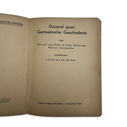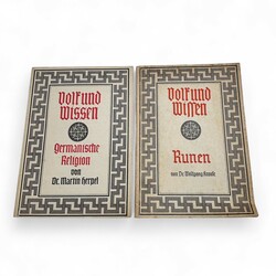 | Omschrijving | Lot diverse boeken met het thema Germanen en rassenkunde waaronder 'Beknopte rassenkunde der Germaansche volken', 'De Germaanse Nederlanden Duizend jaar Germaansche geschiedenis', 'Narionalische en Cultuur' en 'Wolfund wissen Germanische Religion' |