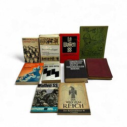 | Omschrijving | Lot diverse boeken SS, WOII en naoorlogs, waaronder 'Der Weg Zum Reich', 'Europäische Freiwillige Die 5.SS Panzerdivision Wiking', 'Berlin Twilight' en 'La Waffen SS Les origines Troupes D'elite et troupes maudites Les crimes de la SS' |