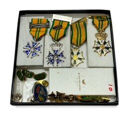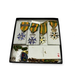 | Omschrijving | Lot diverse medailles en speldjes, onder andere BB (Bescherming Bevolking), verzilverde penning VVV Leeuwarden ca. 1900 en twee Sovjet-Unie spelden met parachute |